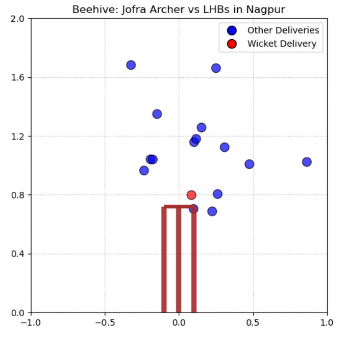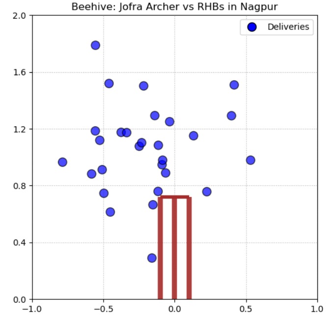 We have the data from the only ODI he played against India in Nagpur earlier this year. The beehive clearly shows that while Archer has consistently bowled shorter lengths, he has completely lost control. The lines are nowhere close to the stumps.