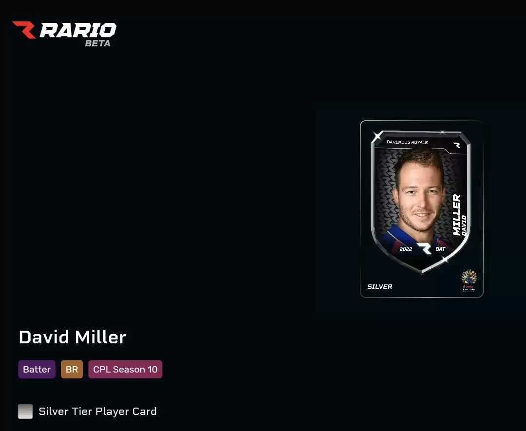 The Rario Moment NFTs helps cricket fans to owe their most cherished moments from the game. The Player Card NFTs helps users win handsome awards by participating in the novel Cricket Strategy Game.