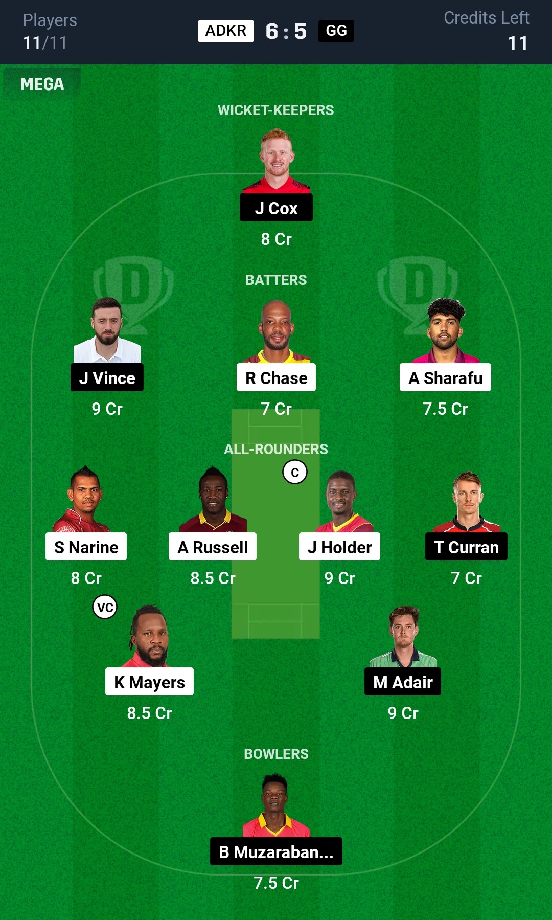 Abu Dhabi Knight Riders have just not been good enough with none of their batters scoring consistently and no other bowler barring Jason Holder in good form. Gulf Giants, though in a worse situation, have had a few players in decent touch. Expect Gulf Giants to come out on top.