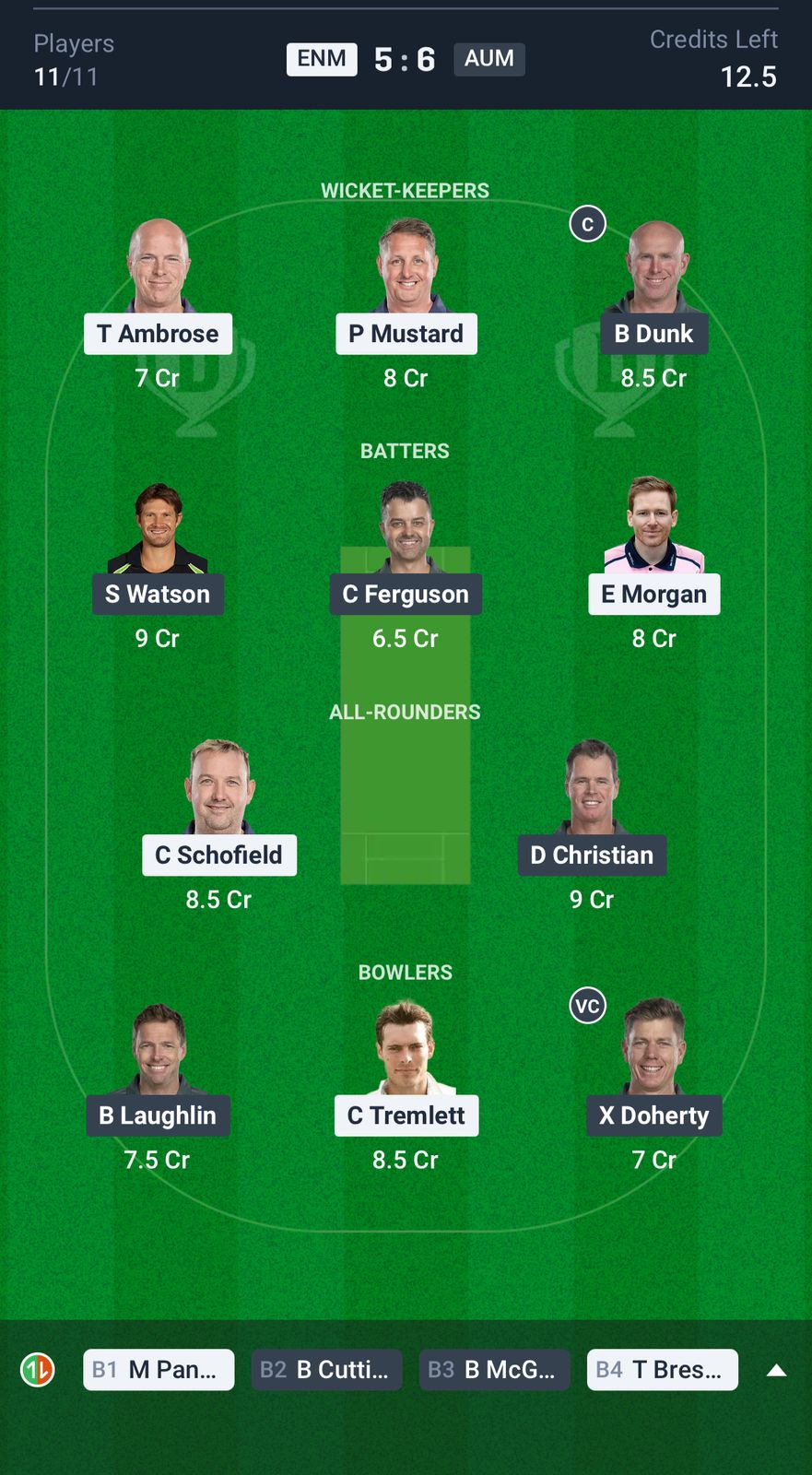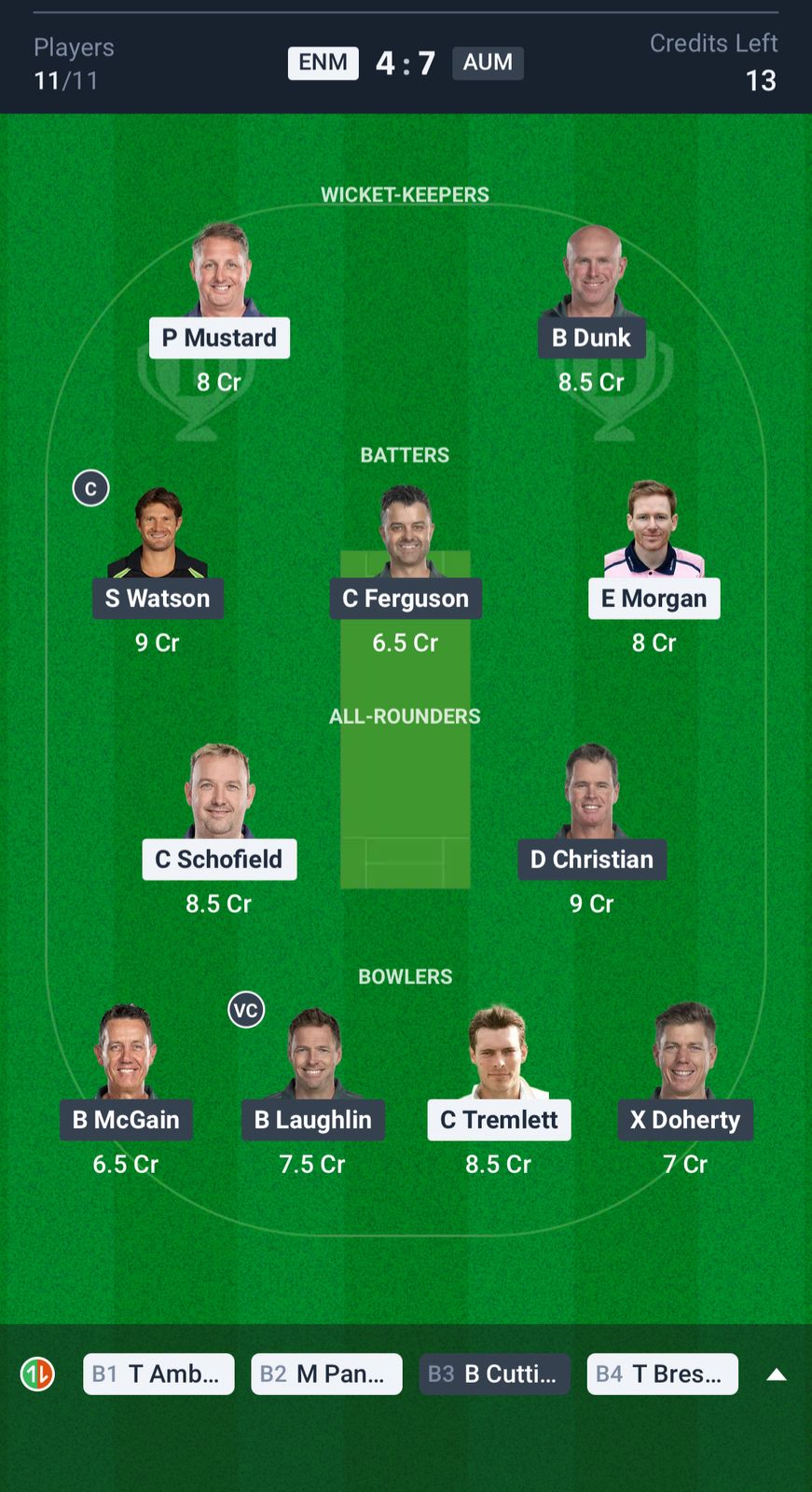 Grand League Team for ENM vs AUM Dream11 Prediction
