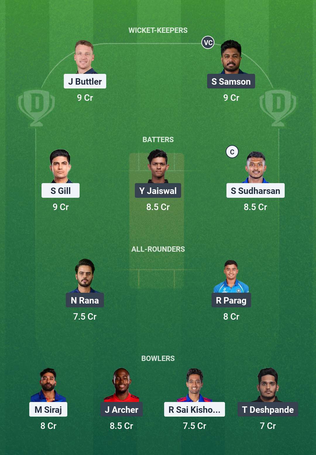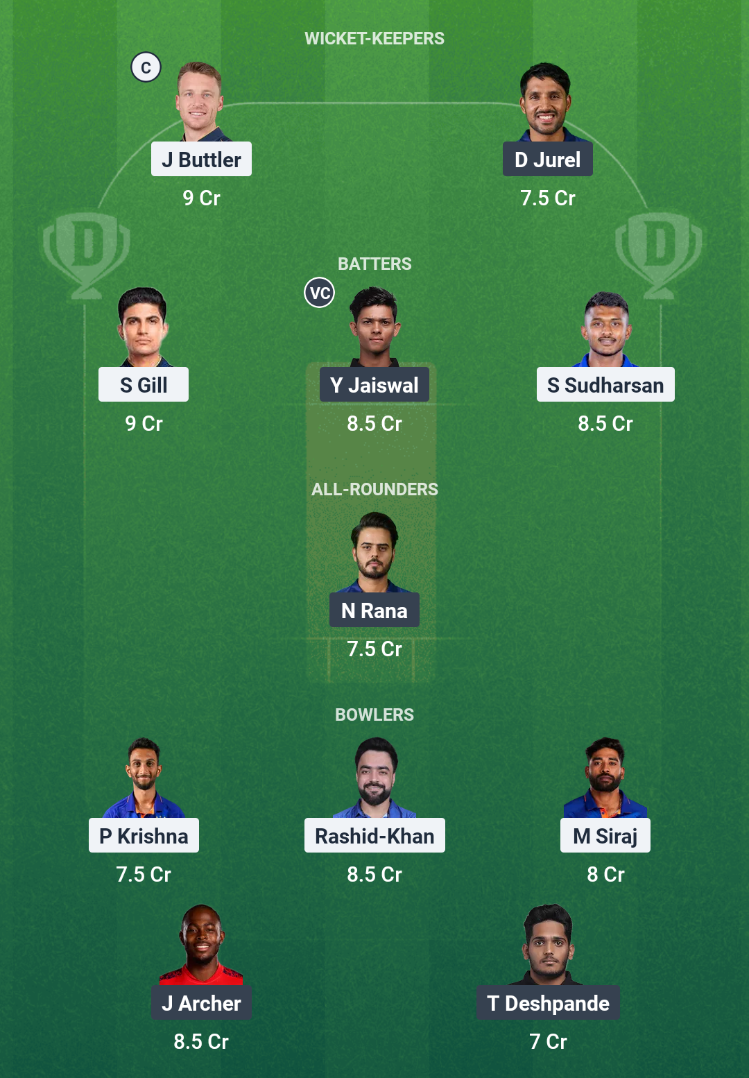 Rajasthan Royals: Yashasvi Jaiswal, Sanju Samson (c & wk), Nitish Rana, Riyan Parag, Dhruv Jurel, Shimron Hetmyer, Wanindu Hasaranga, Jofra Archer, Maheesh Theekshana, Yudhvir Singh, Sandeep Sharma