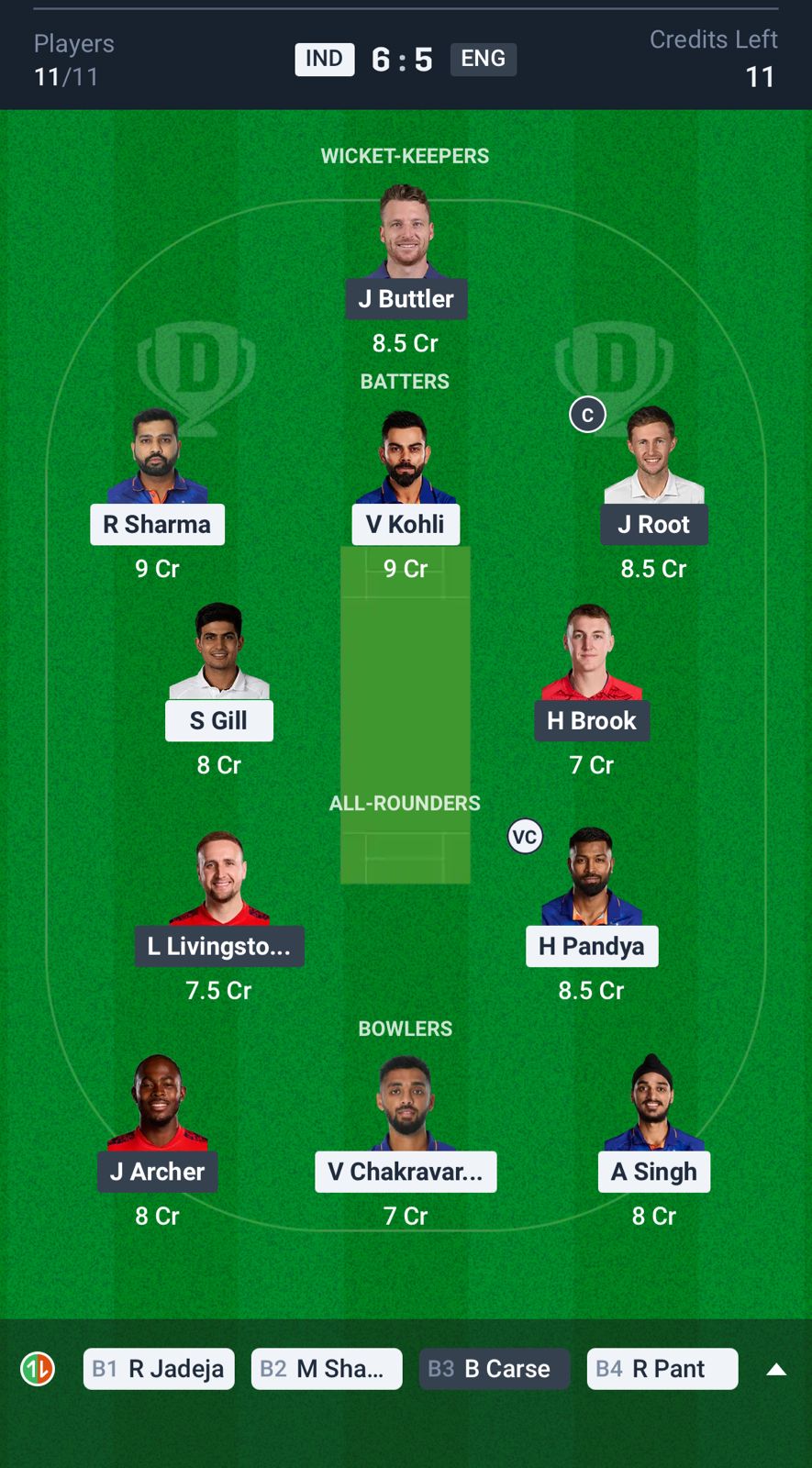 England: Phil Salt (wk), Ben Duckett, Joe Root, Harry Brook, Jos Buttler (c), Liam Livingstone, Jamie Overton, Adil Rashid, Jofra Archer, Mark Wood, Saqib Mahmood