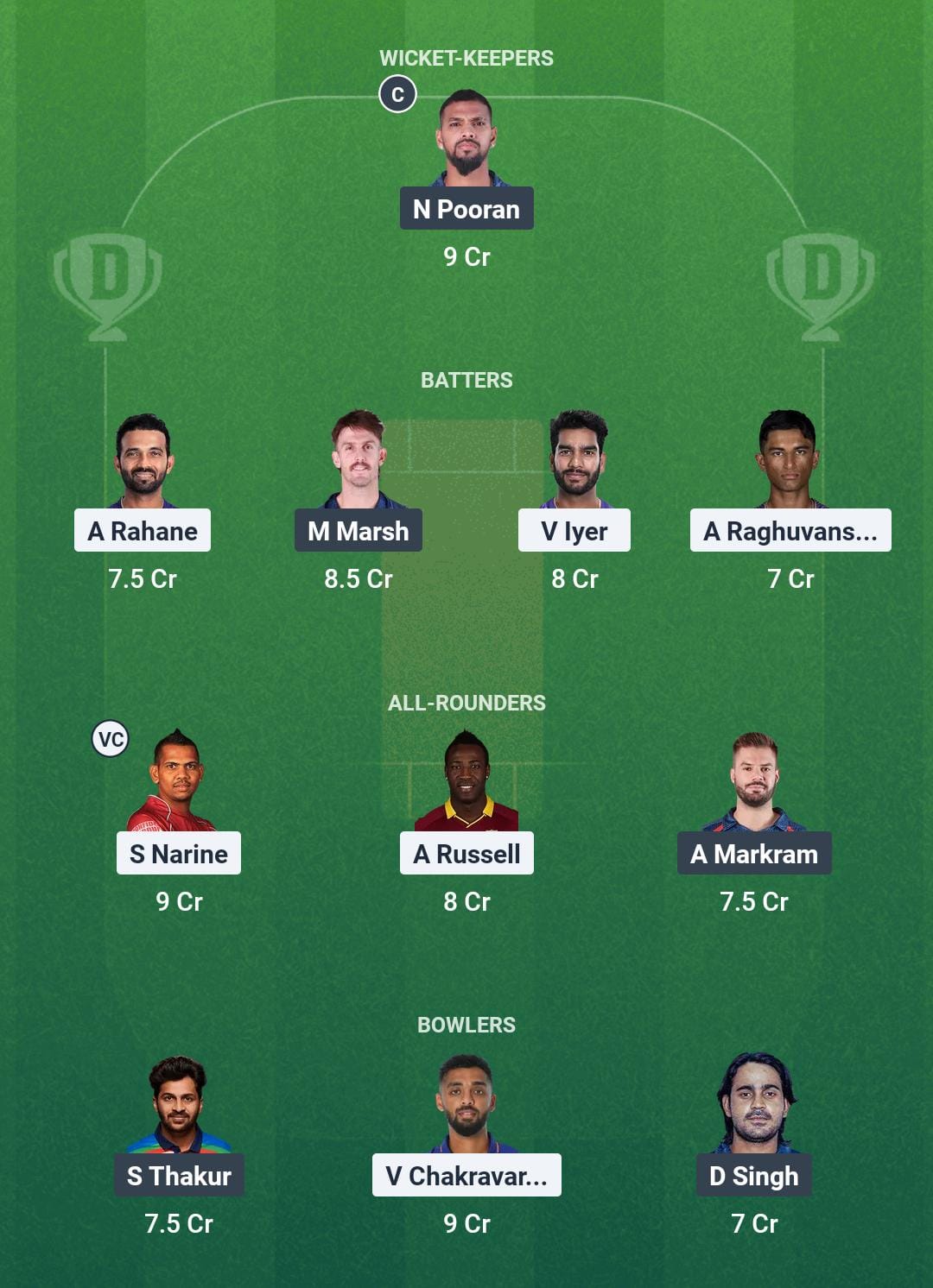 Grand League Team for KKR vs LSG Dream11 Prediction