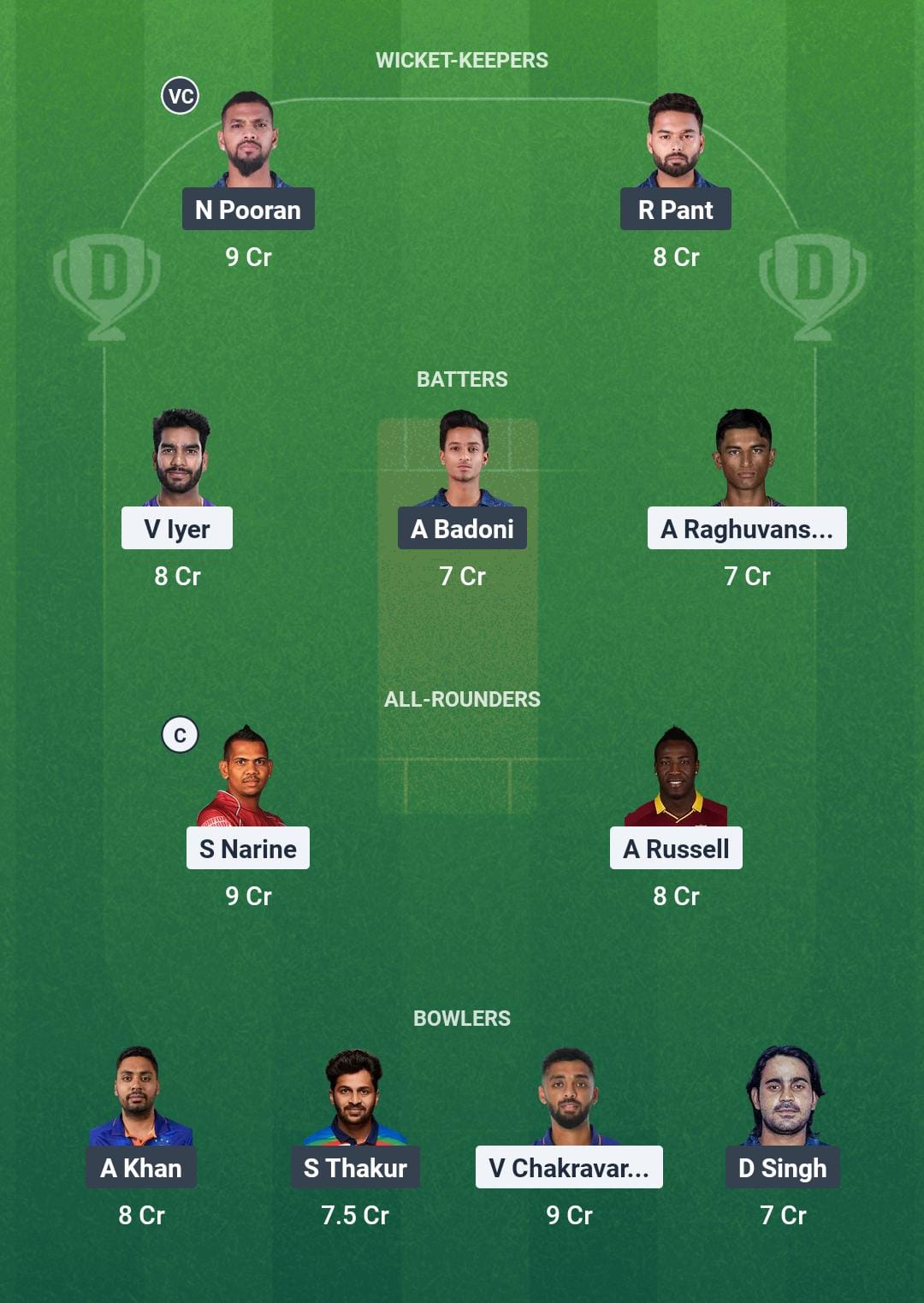 Small League Team for KKR vs LSG Dream11 Prediction