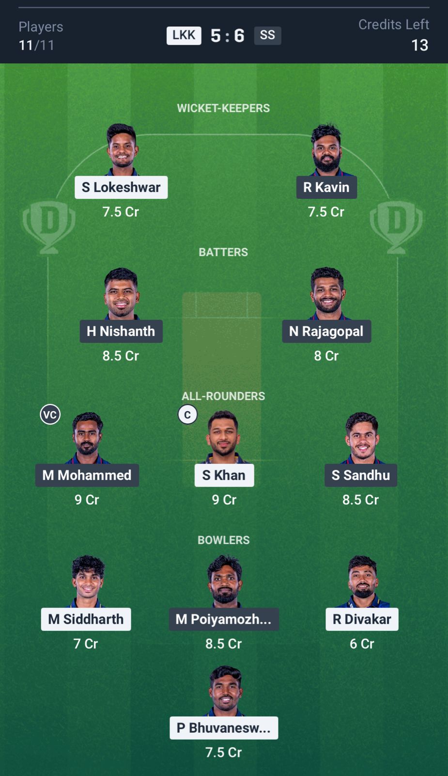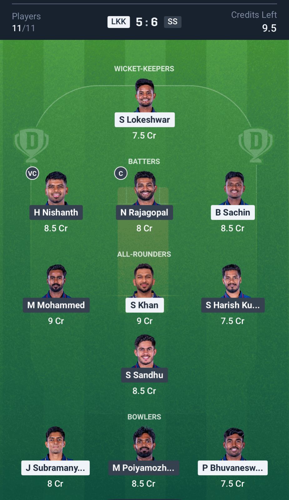Top Captaincy and Vice-Captaincy Picks for LKK vs SS Dream11 Prediction