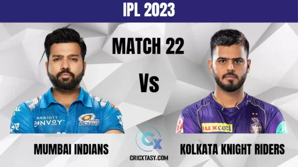 Mumbai Indians will host Kolkata Knight Riders in Match 22 of the IPL 2023 at the Wankhede Stadium in Mumbai on Sunday, April 16th, 2023.
