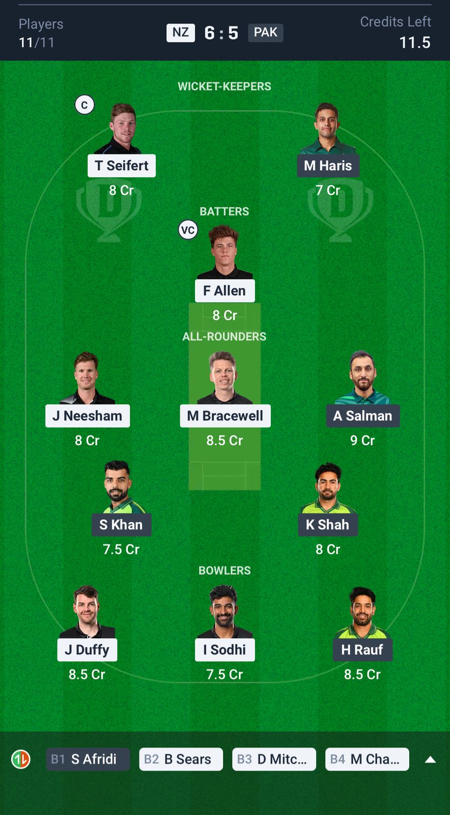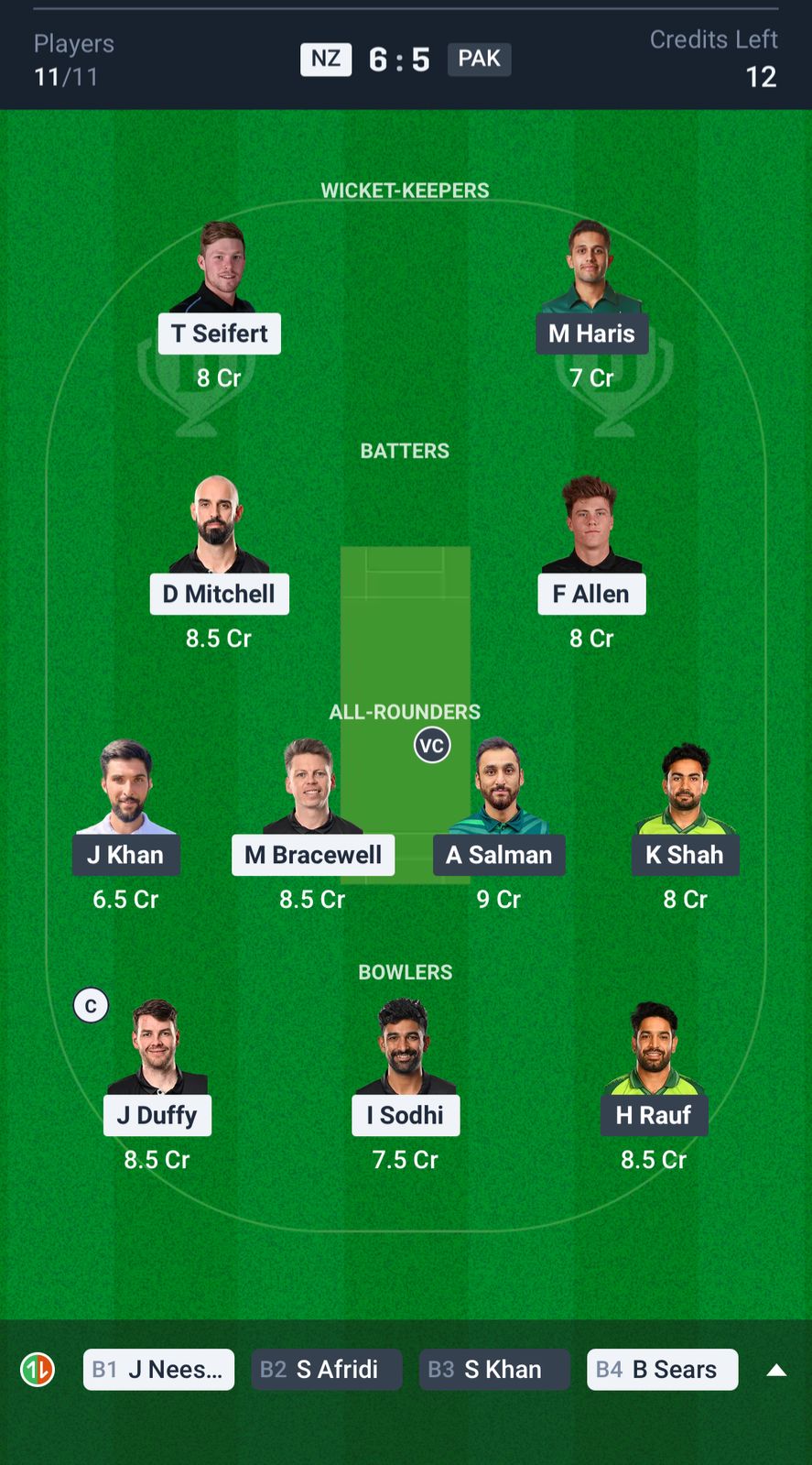 New Zealand: Tim Seifert, Finn Allen, Mark Chapman, Daryl Mitchell, James Neesham, Mitchell Hay (w), Michael Bracewell (c), Zakary Foulkes, Jacob Duffy, Ish Sodhi, Ben Sears.