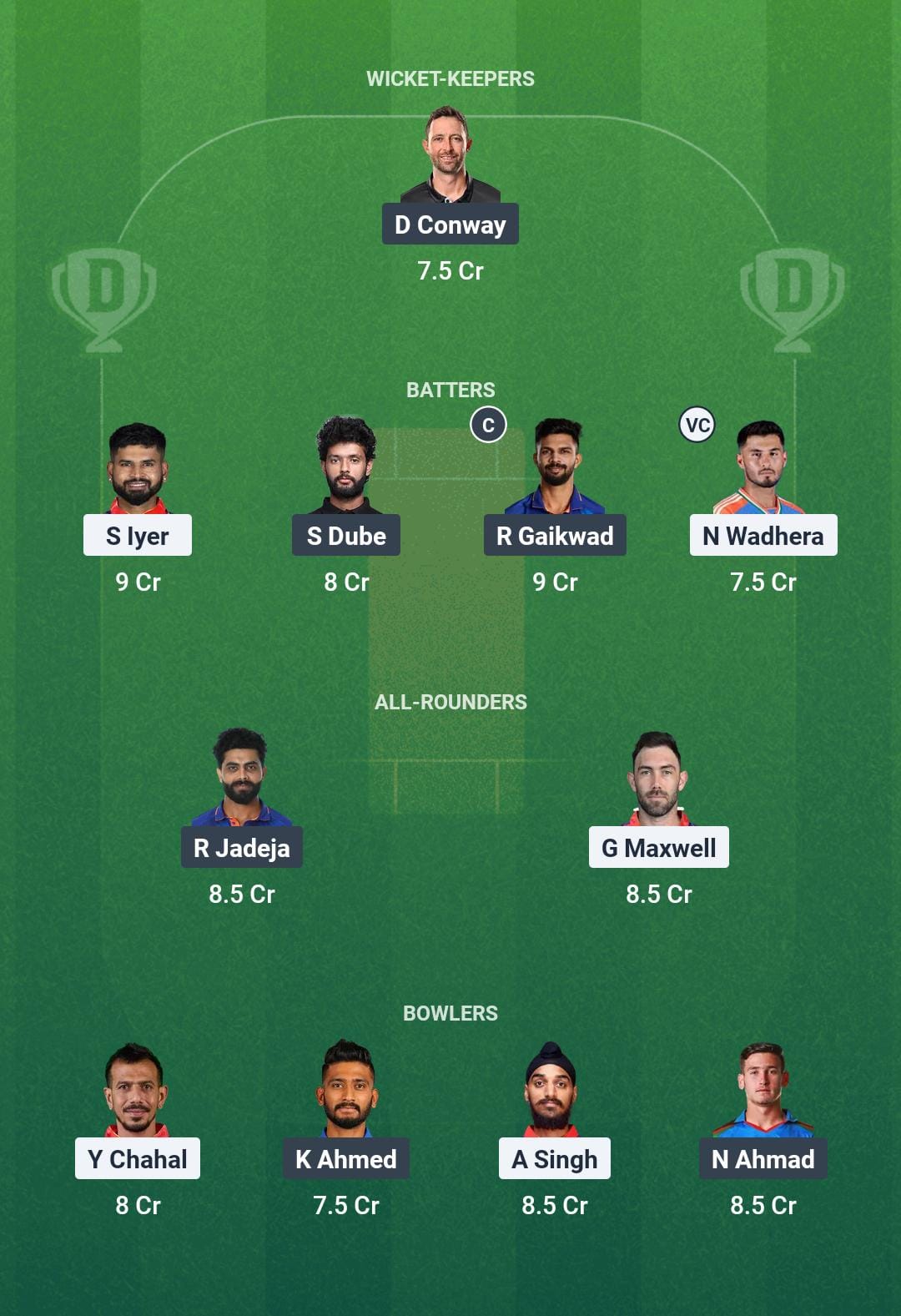 Chennai Super Kings: Rachin Ravindra, Devon Conway, Ruturaj Gaikwad (c), Shivam Dube, Vijay Shankar, Ravindra Jadeja, MS Dhoni (wk), Ravichandran Ashwin, Noor Ahmad, Mukesh Choudhary, Khaleel Ahmed