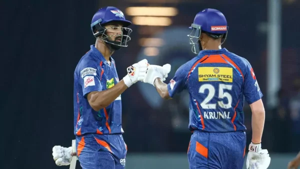 Lucknow Super Giants: KL Rahul (c), Kyle Mayers, Deepak Hooda, Nicholas Pooran (wk), Marcus Stoinis, Krunal Pandya, Ayush Badoni, Ravi Bishnoi, Avesh Khan, Mark Wood, Yash Thakur