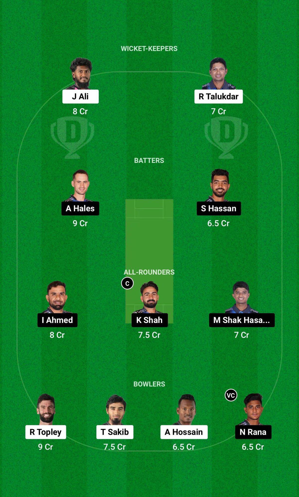 Rangpur Riders: Alex Hales, Azizul Hakin Tamim, Tawfique Khan, Saif Hassan, Iftikhar Ahmed, Khushdil Shah, Nurul Hasan (c & wk), Mahedi Shak Hasan, Kamrul Islam Rabbi, Nahid Rana, Akif Javed