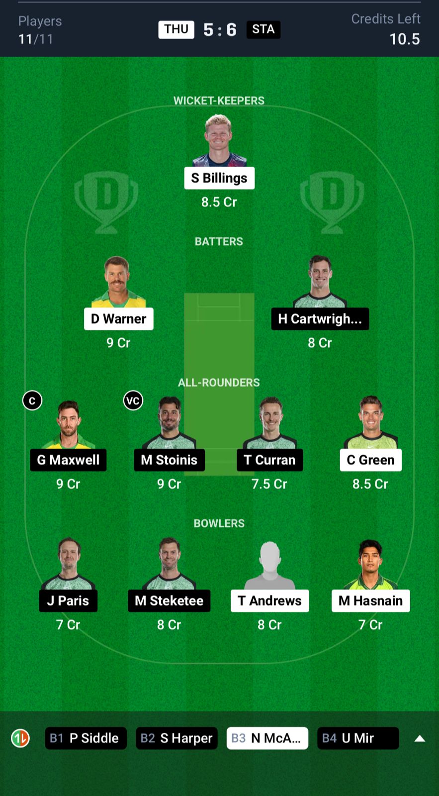 Small League Team for THU vs STA Dream11 Prediction