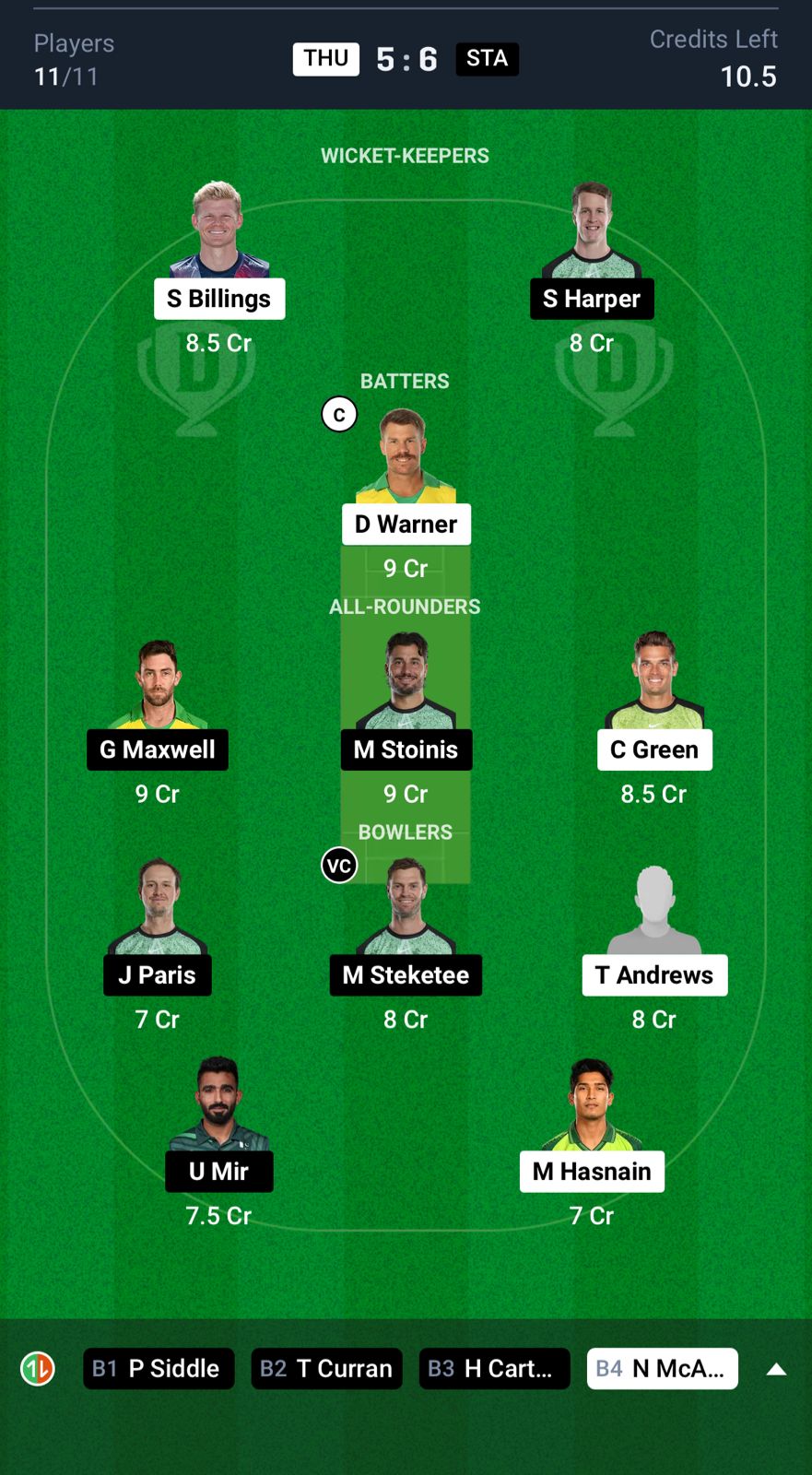 Top Player Picks for THU vs STA Dream11 Prediction