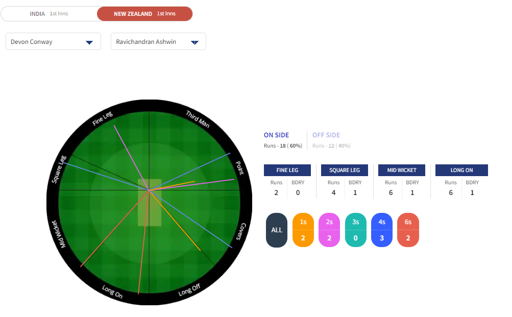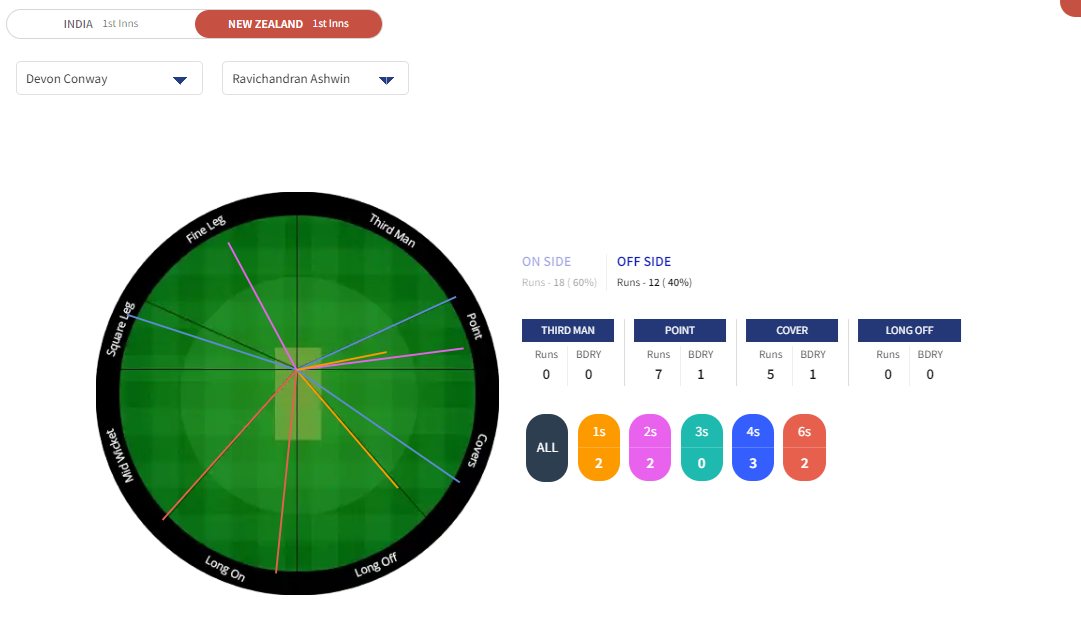 Conway hit with the line of the ball and ensured not to get beaten by the trajectory at any stage. While he didn’t face Ravindra Jadeja much, he was largely comfortable against him, barring a couple of balls that turned off the rough. Overall, he was in control mostly and negated the biggest threat – spinners.
