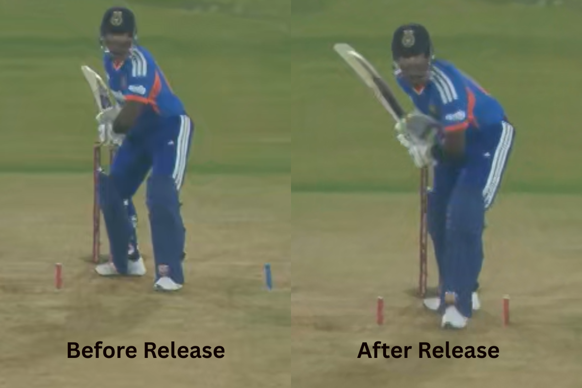 This is an instance from the 3rd T20I between India and South Africa, during which Suryakumar Yadav scored 12 runs. The picture on the left is before Lungi Ngidi released the delivery, in which he is in his ‘after the trigger movement’ position. However, after Ngidi releases the ball, Suryakumar makes another slight trigger – which results in his back foot going away from the stumps again.