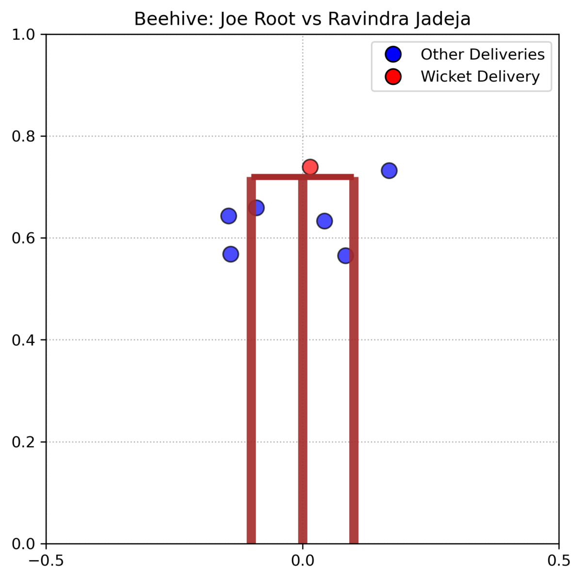 The dismissal delivery was the quickest (100.7 km/h) Jadeja bowled to Root, while the previous deliveries had an average of 96.81 km/h. The ball bounced 0.73 meters after pitching, again the highest among all deliveries (an average on non-wicket deliveries was 0.63 meters). So, the ball just zipped through and didn’t give enough time to the batter to defend.