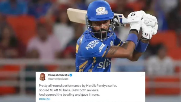 His horrid run continued in Mumbai Indians’ latest game against Rajasthan Royals (RR) at Sawai Mansingh Stadium, Jaipur, as he failed to make an impact again. While the team needed brisk runs and a big finish, Hardik struggled severely, scoring 10 in as many balls.