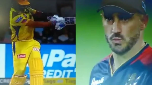The batter looked so glorious while executing the stroke which hit the roof of the iconic Chinnaswamy Stadium that he got not only the legendary Sunil Gavaskar raving over him but also opposition skipper Faf du Plessis giving his nod of approval to his shot.