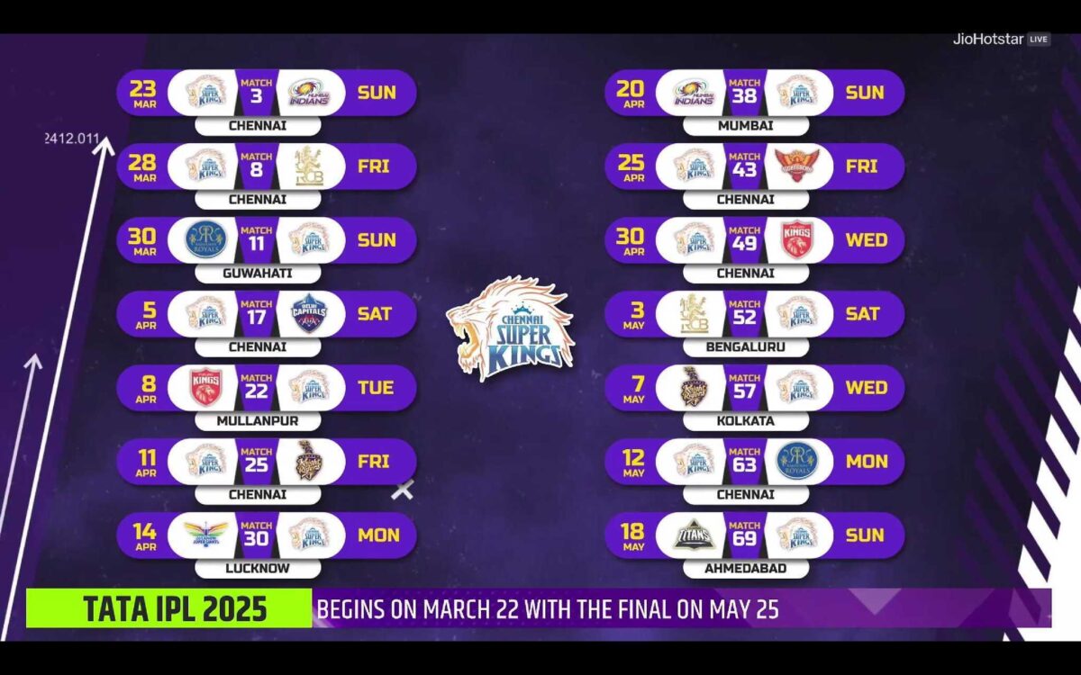 Check CSK’s full schedule for IPL 2025 below.