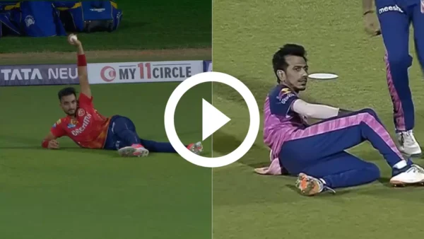 Harshal swiftly dashed from the deep and executed a sliding catch. He celebrated with a pose reminiscent of Chahal’s distinctive style, sitting sideways with crossed legs, raising the ball, and resting his head on one palm.