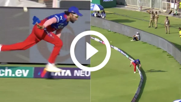 Despite the ball’s trajectory almost taking it over the fence, Patidar utilized a superb blend of speed and anticipation as he cleanly caught the ball mid-air and prevented it from crossing the boundary line.