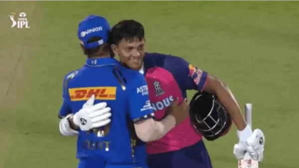 Jaiswal also hit the winning runs for Rajasthan Royals when he late cut part-time offspinner Tilak Varma to the backward point boundary for a four. He had his arms aloft and celebrated his match-winning ton. After winning the match for his side, he happily went to his India captain Rohit Sharma and hugged him.