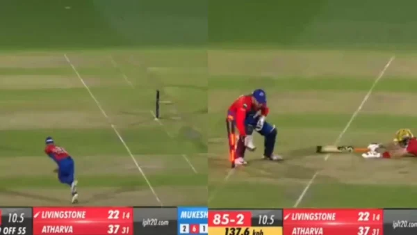 Atharva Taide, who was at the non-striker’s end then, went way ahead of his crease in an attempt to steal a single, but Livingstone wasn’t interested at all. David Warner tried a direct hit but was unsuccessful.
