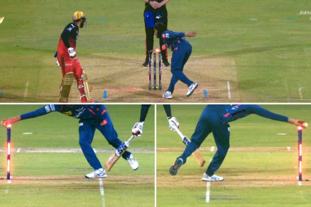 Digvesh’s right arm hadn’t gone up until the point of release and so he was within his right to run out Jitesh and he did so while the RCB stand-in skipper was outside the crease. According to the law, that should have been out, but the third umpire gave it not put (incorrectly) by stating that Digvesh had completed his action (again, incorrectly).