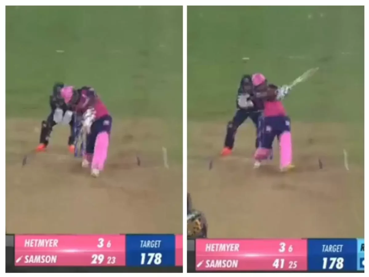 The third maximum was hit to correct the little mistakes committed on the second six. Rashid Khan again bowled a shorter-length ball, and Samson rocked back to pull it ferociously over the wide of long-on to procure his third six of the over. This six came off the middle of the blade and went miles further than the previous hit.