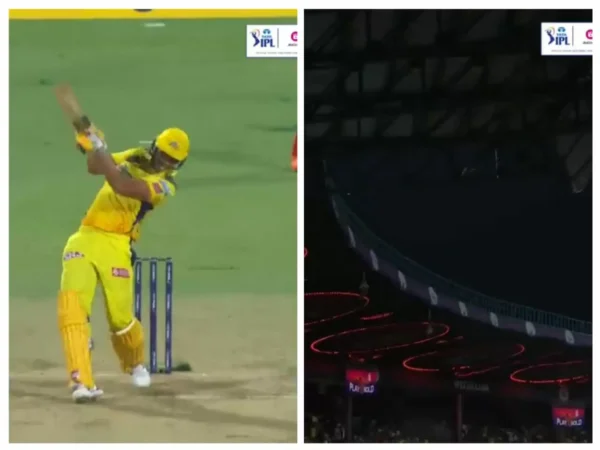 Shivam Dube hit a gigantic six off Harshal Patel in the 13th over of the first innings against Royal Challengers Bangalore. The ball went very high in the night sky and on the roof as well. The ball came off the meat of the bat and went 111 metres far.
