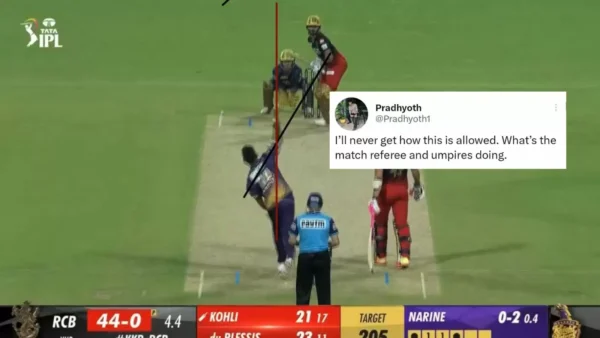 Those doubts were brought to light by one of RCB’s passionate followers ‘Pradyoth’ on Twitter through a clip, where a slow-mo breakdown of Sunil Narine’s action and release following the delivery stride seems to suggest that the West Indies spinner did chuck his way to the Virat Kohli dismissal.