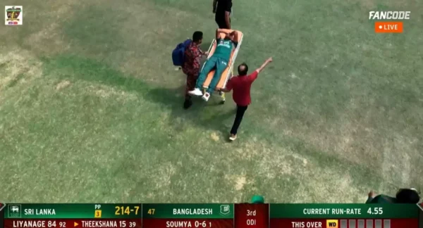 WATCH: Bangladesh star taken to hospital after fatal collision during Sri Lanka game