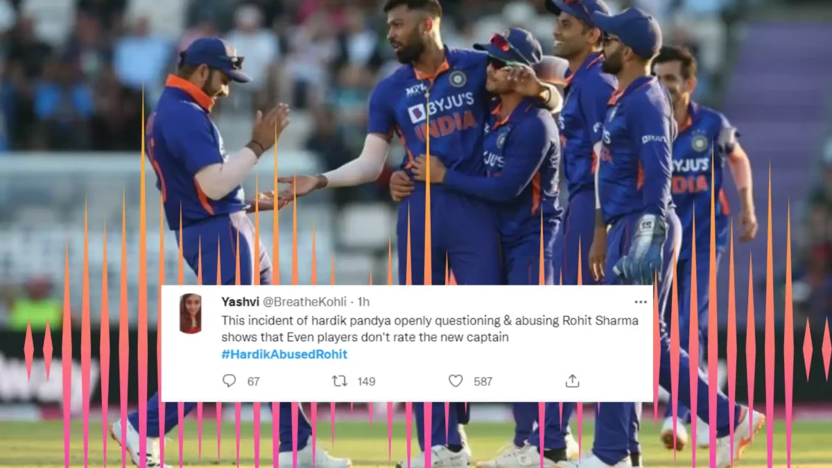 Virat kohli fans watching hardiks abusive language against Rohit be like pic.twitter.com/KmBOTeGsKY— Pratik (@itsVk_pratik19) July 10, 2022