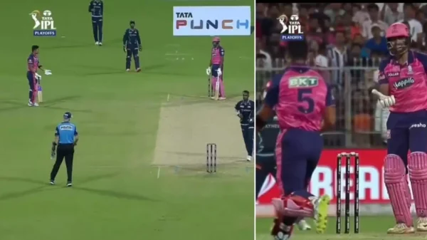 The run-out took place off a wide outside the off-stump on the final ball of the RR first-innings batting effort from GT left-arm pacer Yash Dayal. Having bowled the no-ball on the previous ball, Dayal gave RR another extra with a wide far outside the off-stump versus Ashwin.