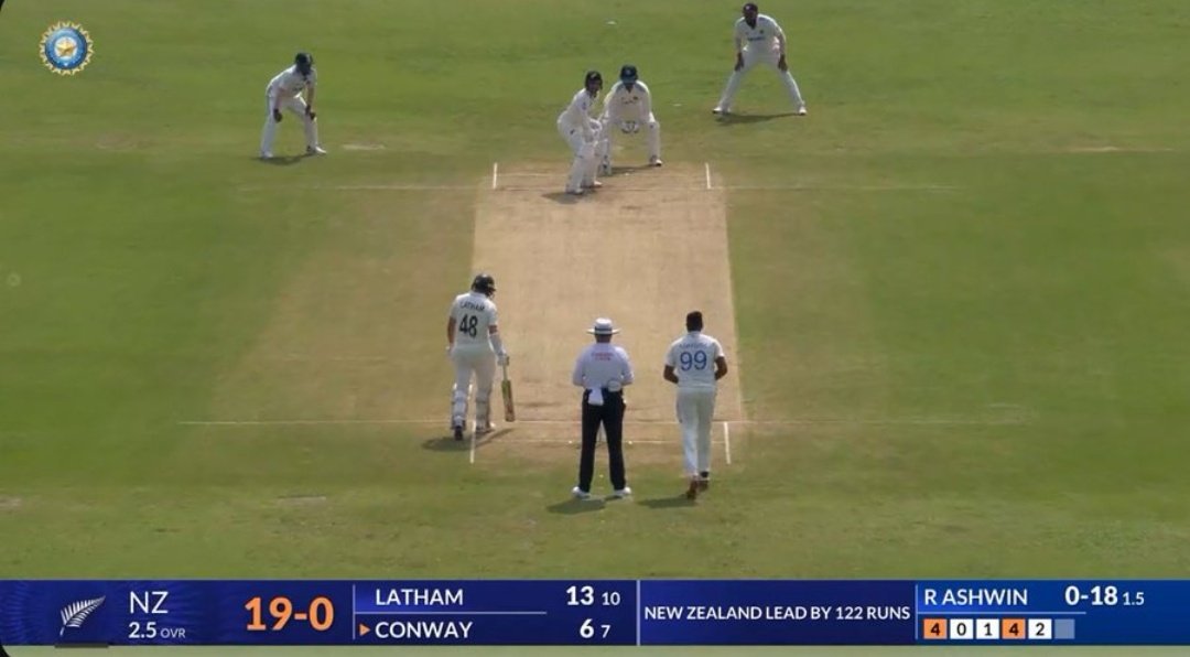 It was just the third over of New Zealand’s second innings after they had gained a formidable 103-run lead in the first dig. Ideally, a captain would want his spinners to attack on an assisting track with a short leg, silly point or silly mid-off and an extra slip fielder. However, Rohit only gave one slip and one backward square leg.