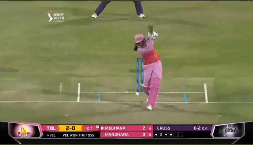 Meghana had perfectly found the gap and the mid-on and mid-off fielders didn’t have any chance given the timing on the ball. The shot got her going as she ended up smashing 73 runs off just 47 deliveries with seven fours and four sixes at a strike rate of 155.32.