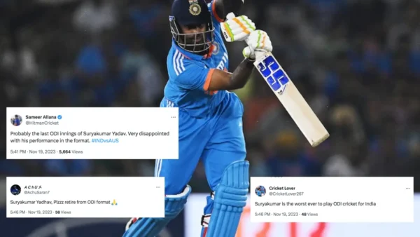Regrettably, Suryakumar Yadav had not showcased any standout performances in the ongoing World Cup, with his sole notable contribution being a resilient 49-run inning against England. Limited opportunities to bat had hindered his overall impact in the competition.