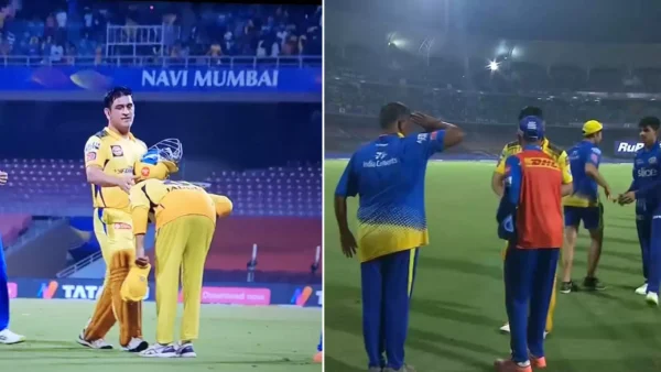 Soon after he finished off the run chase, the crowd were erupting in joy and the CSK players were ecstatic. However, it was Jadeja’s reaction that won hearts as the CSK skipper went straight to Dhoni and fell on his feet. The CSK support staff member, clearly in awe of Dhoni, gave him a salute as he walked back, barely even celebrating the win.