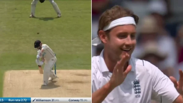 Stuart Broad excelled with the new ball yet again, this time in the absence of James Anderson. He started off by having Tom Latham caught in the slips for a duck in the very first over, after the visitors opted to bat. He continued his brilliance to keep Will Young and Blackcaps skipper Kane Williamson under sustained pressure with accurate pitching, with Matty Potts and Jamie Overton too, playing their parts.