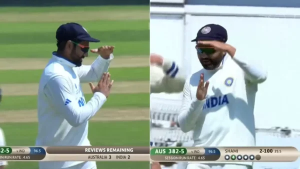 Earlier on Day 1, Rohit Sharma’s unique way of indicating the DRS sign caught everyone’s attention. Rohit made a distinctive gesture, calling for the DRS without directly consulting the on-field umpire. A video of this incident quickly went viral as the India skipper cleverly signaled the DRS behind his back, without even facing the umpire.