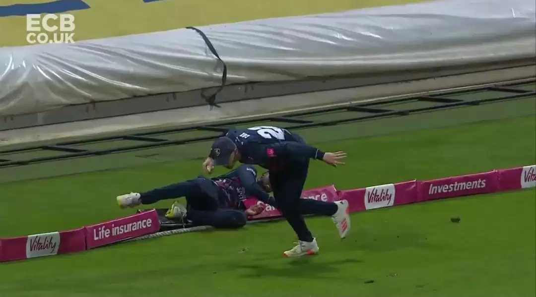 An incident near the boundary ropes from Saturday (September 18) night’s T20 Blast final has divided the cricket world. The summit-clash between Somerset and Kent saw a contentious caught dismissal given not out on-field by the umpire when rules probably suggest on the contrary.