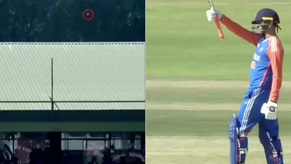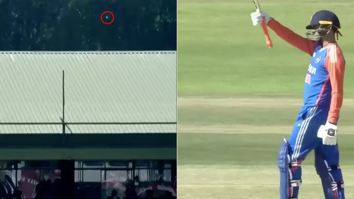 During the ongoing second T20I between Zimbabwe and India, talented young batter Abhishek Sharma slammed a big six that landed on the rooftop of the stadium to bring up his maiden international fifty.