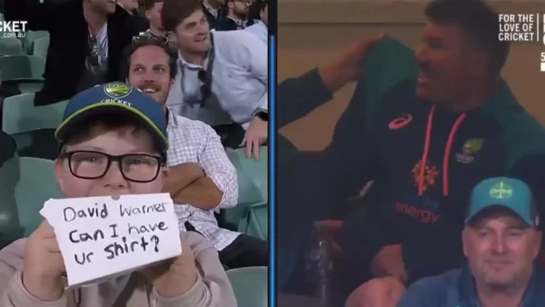 It all started during the 46th over of Australia’s comfortable run-chase of 288, with the kid seated in the crowd showcasing a placard to the screen, with text, “David Warner, can I have ur (your) shirt?”