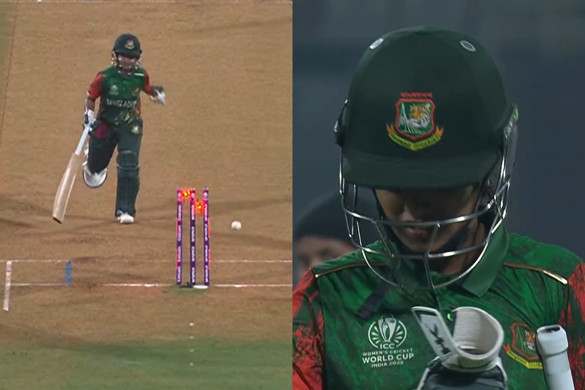 The dismissal occurred in the 11th over. Fargana Hoque was on strike, and she defended a delivery on the leg side. The ball rolled on just to the right of Harshitha Samarawickrama, who was stationed at mid-wicket. The fielder wasted no time to pick the ball up and aim at the stumps. Hoque was more than a yard out of the crease at the time of impact, and had to walk back for a modest seven off 35 deliveries.