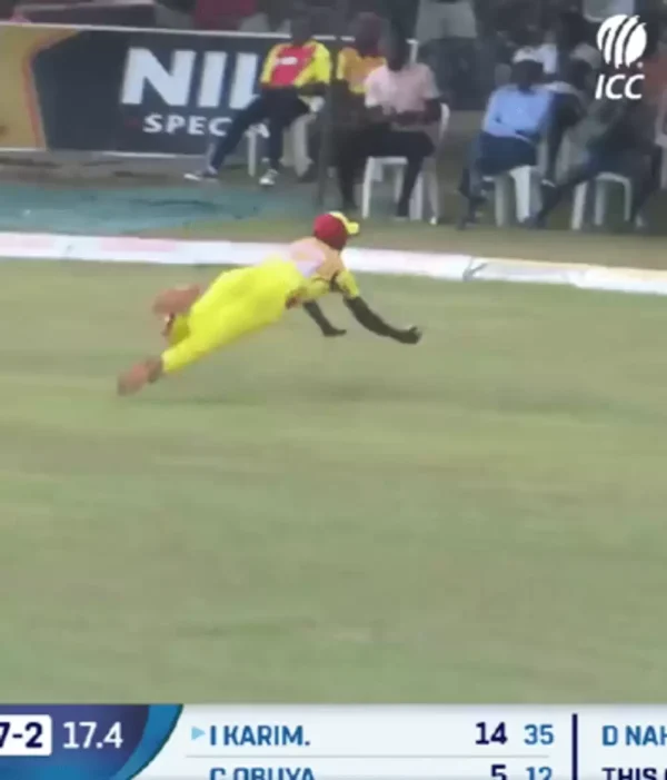 ICC World Cup challenge league 2 witnessed an eye-catching piece of fielding, with Uganda cricketer Frank Nsubuga pulling off arguably the greatest running catch of all time.