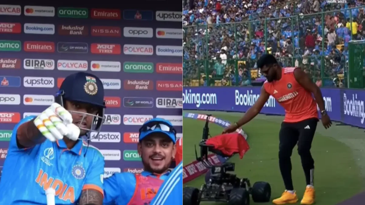 The focus of the buggy camera was on Suryakumar, who was sitting geared up while Shreyas Iyer and KL Rahul was batting in the middle. As the visuals of this lighthearted equipment prank were broadcasted, commentator Harsha Bhogle playfully reminded the Indian team that the broadcasters rely on the camera to record videos, adding a touch of jest to the moment.