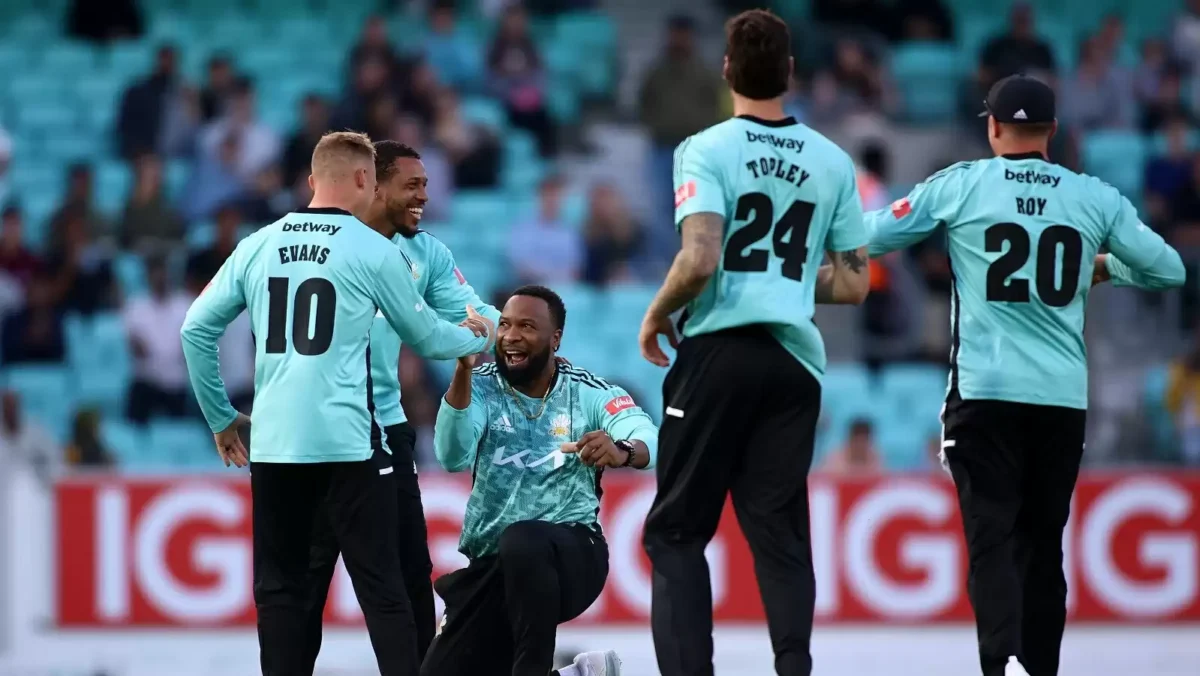 Kieron Pollard pulled off a stunning one-handed catch in a South Group T20 Blast 2022 fixture between Surrey and Hampshire on Thursday, June 2.