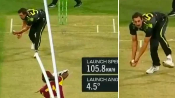 The exceptional catch was witnessed at the Gabba on the penultimate ball of the first over in the West Indies run-chase. Getting it to tail in late into the left-hander Mayers, Starc secured a reflex grab with the ball flying off the batter’s willow.