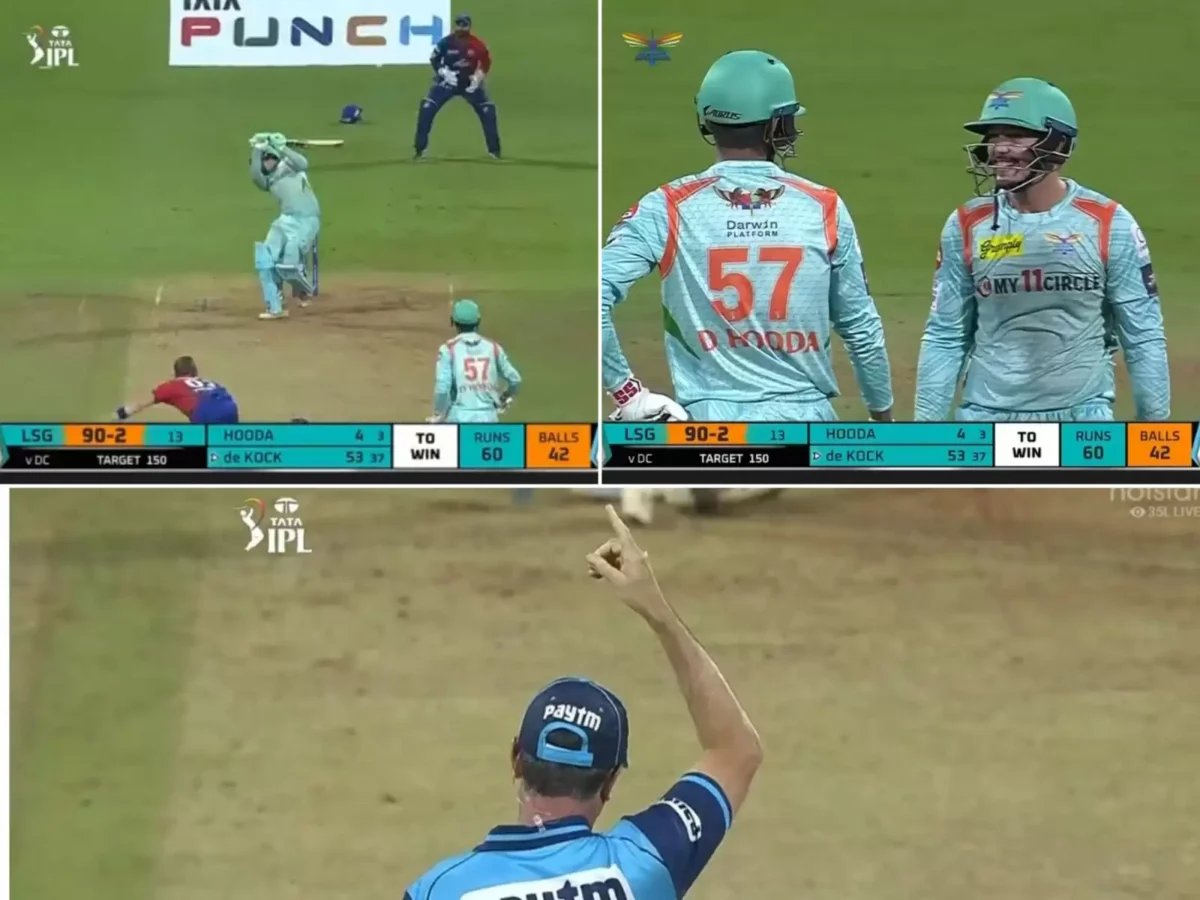 Quinton De Kock played a valuable innings to take his team, the Lucknow Super Giants, to a fine win against Delhi Capitals on Thursday night. The South African opener was struck by a beamer bowled by Delhi Capitals speedster and national teammate Anrich Nortje. It was during the first ball of the 13th over that this incident occurred.