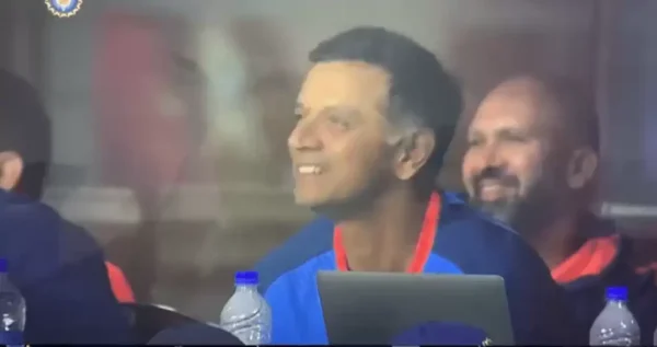 Knowing he is centre of the attention, Dravid went all too shy and came up with an amusing smile, which made for a priceless reaction from a man who doesn’t like the limelight too much. The Indian batting genius turned coach instantly turned to the personnel sitting alongside him and shared a joke with them, which them got them laughing too.