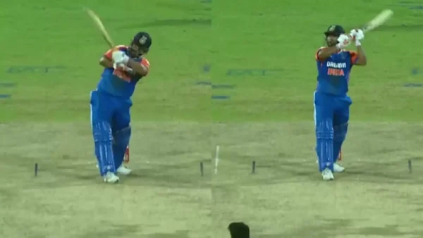 Rishabh Pant hit a helicopter shot for a six off Asitha Fernando on the fourth delivery of the 16th over during the first T20I between Sri Lanka and India. It sailed all over the ropes and went deep into the stands, providing a much-needed boundary to Pant and his team.